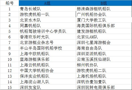中國俱樂部杯帆船挑戰(zhàn)賽分組