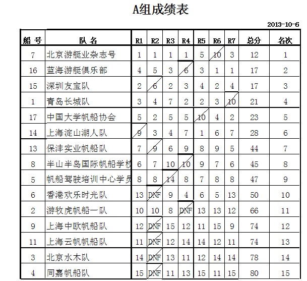 >第九屆中國俱樂部杯帆船挑戰(zhàn)賽第一賽段成績