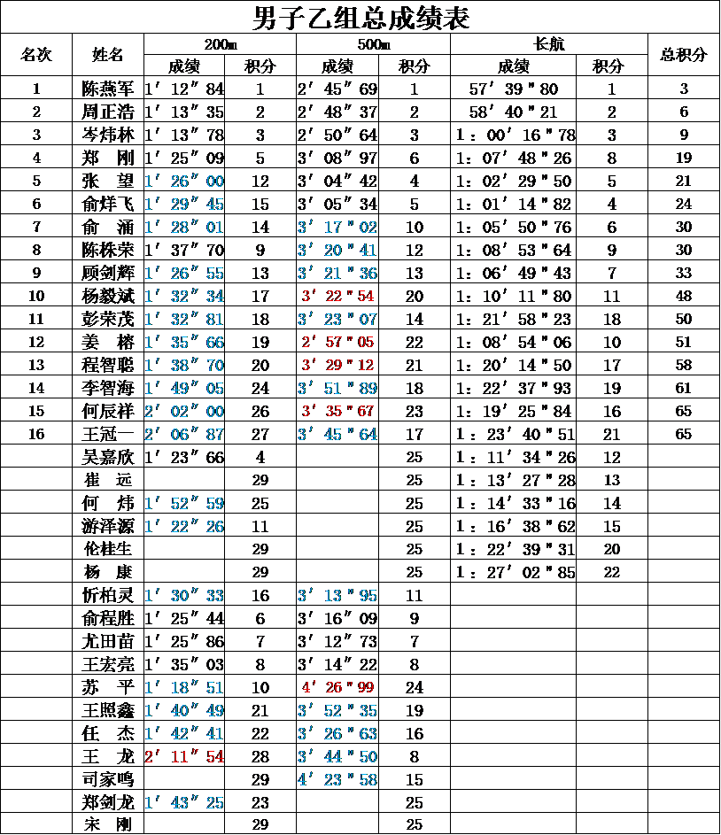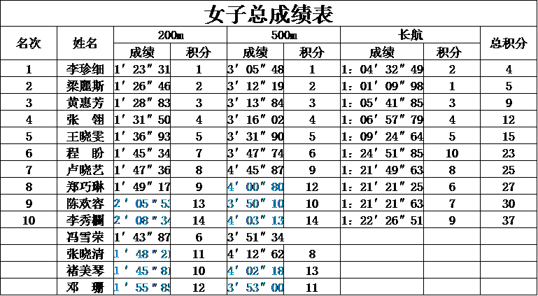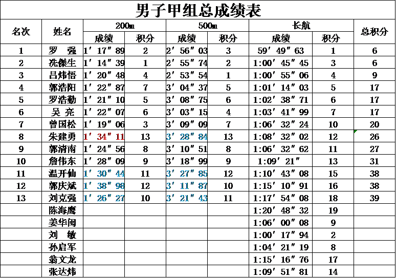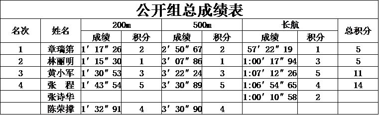 2014年同安區(qū)海峽兩岸“大同建筑”杯獨(dú)木舟邀請賽成績