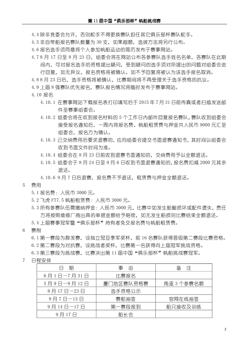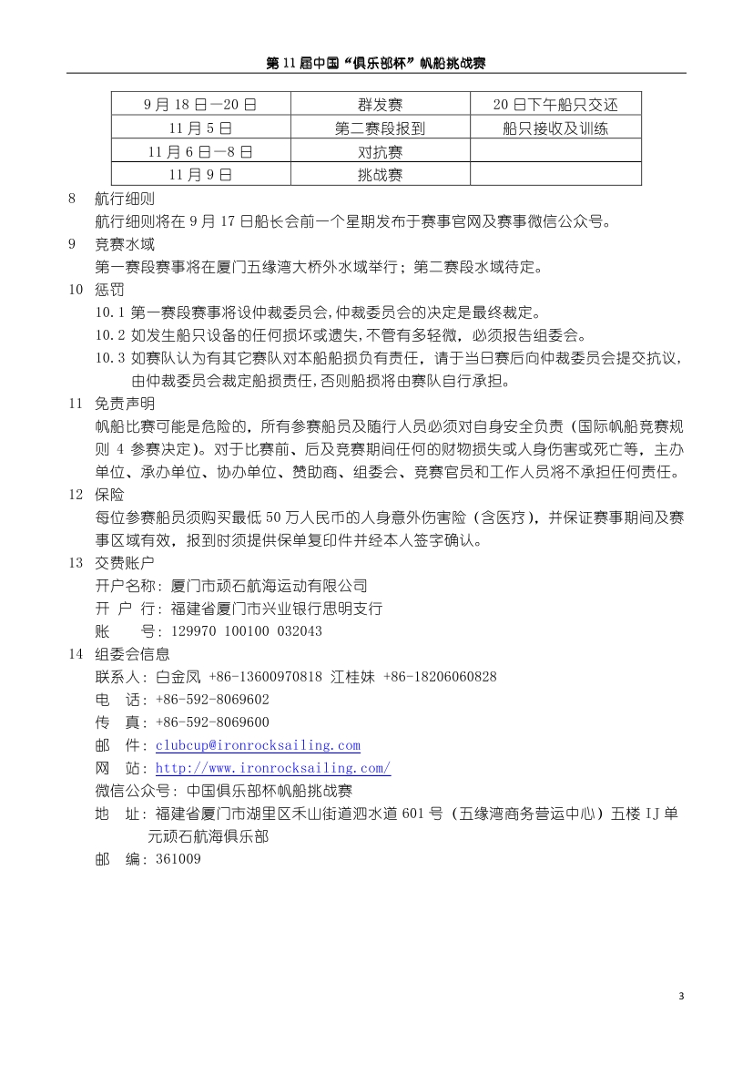 第11屆中國“俱樂部杯”帆船挑戰(zhàn)賽競賽通知