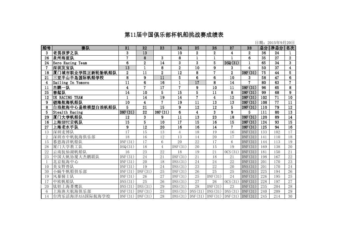 >第11屆中國“俱樂部杯”帆船挑戰(zhàn)賽成績發(fā)布