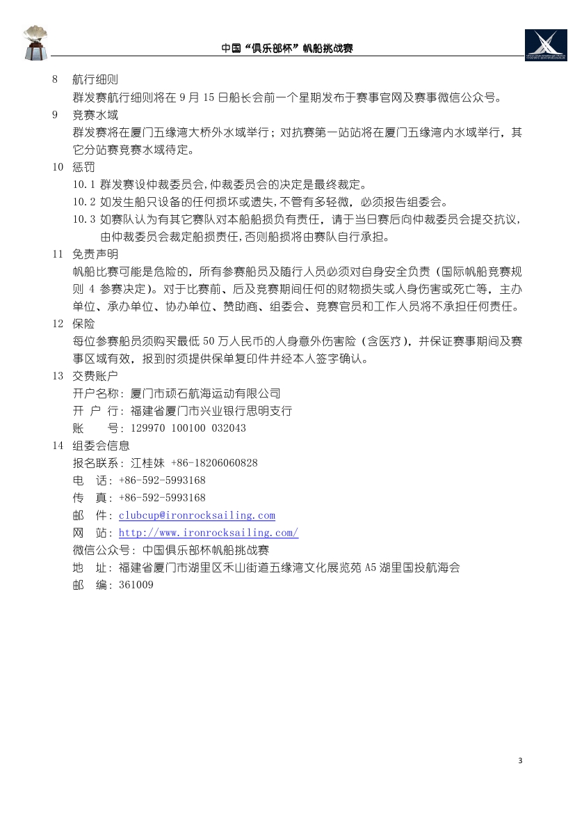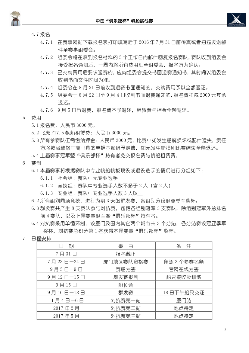 第12屆中國“俱樂部杯”帆船挑戰(zhàn)賽競賽通知