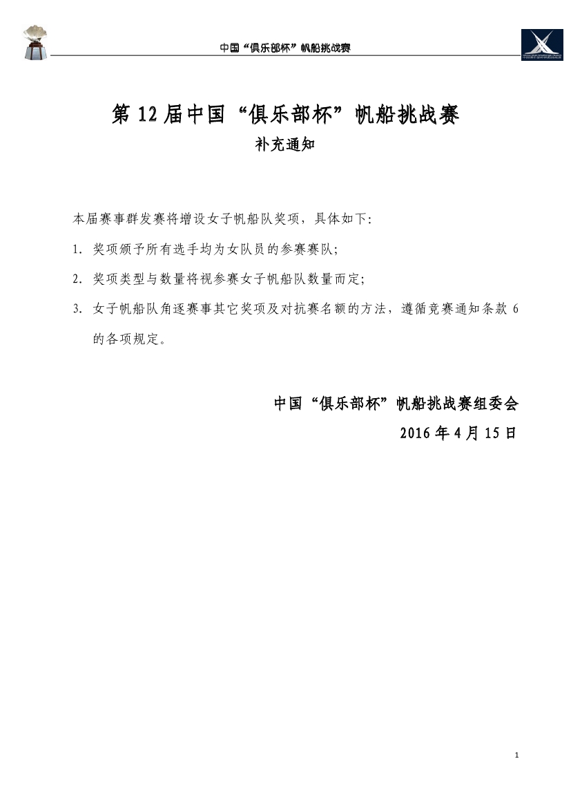 >第12屆中國(guó)"俱樂(lè)部杯"帆船挑戰(zhàn)賽補(bǔ)充通知
