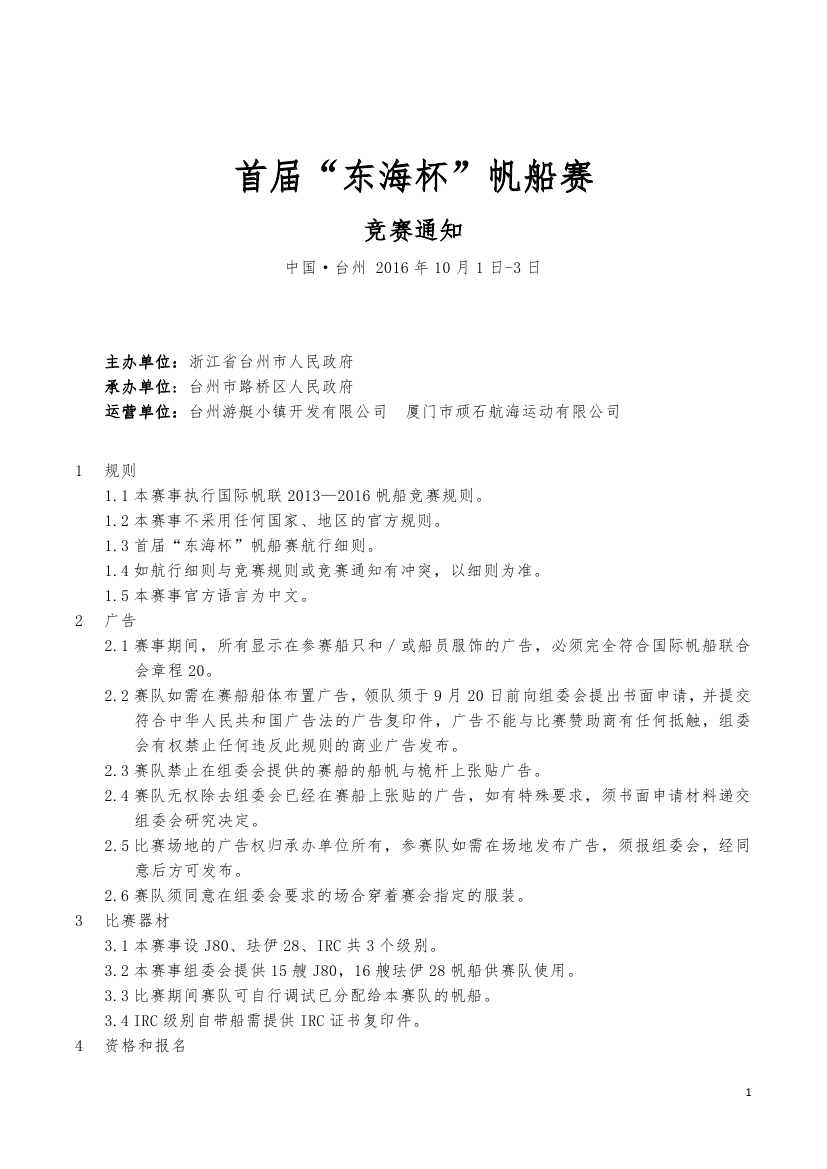 >2016首屆“東海杯”帆船賽競(jìng)賽通知