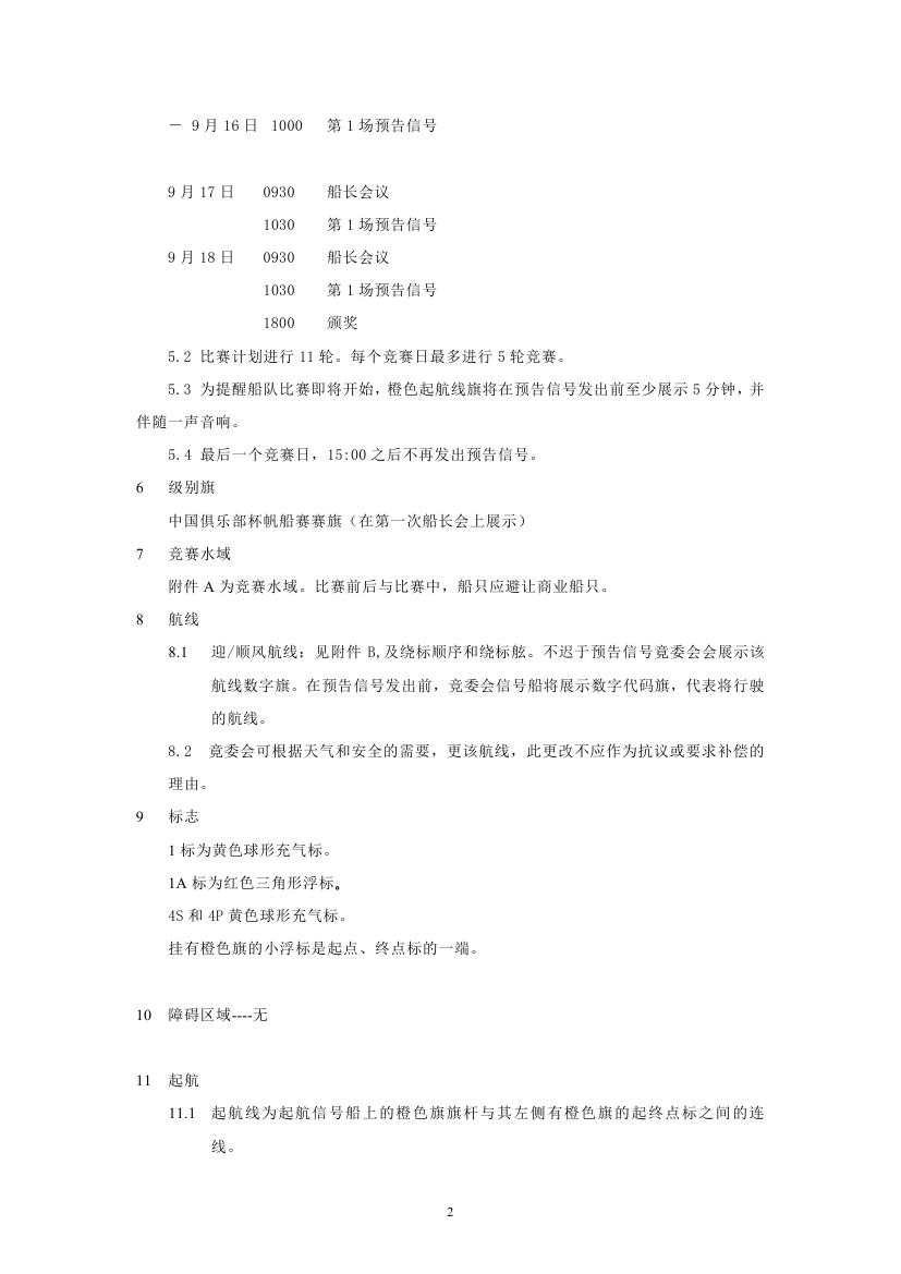 第12屆中國“俱樂部杯”帆船挑戰(zhàn)賽航行細則