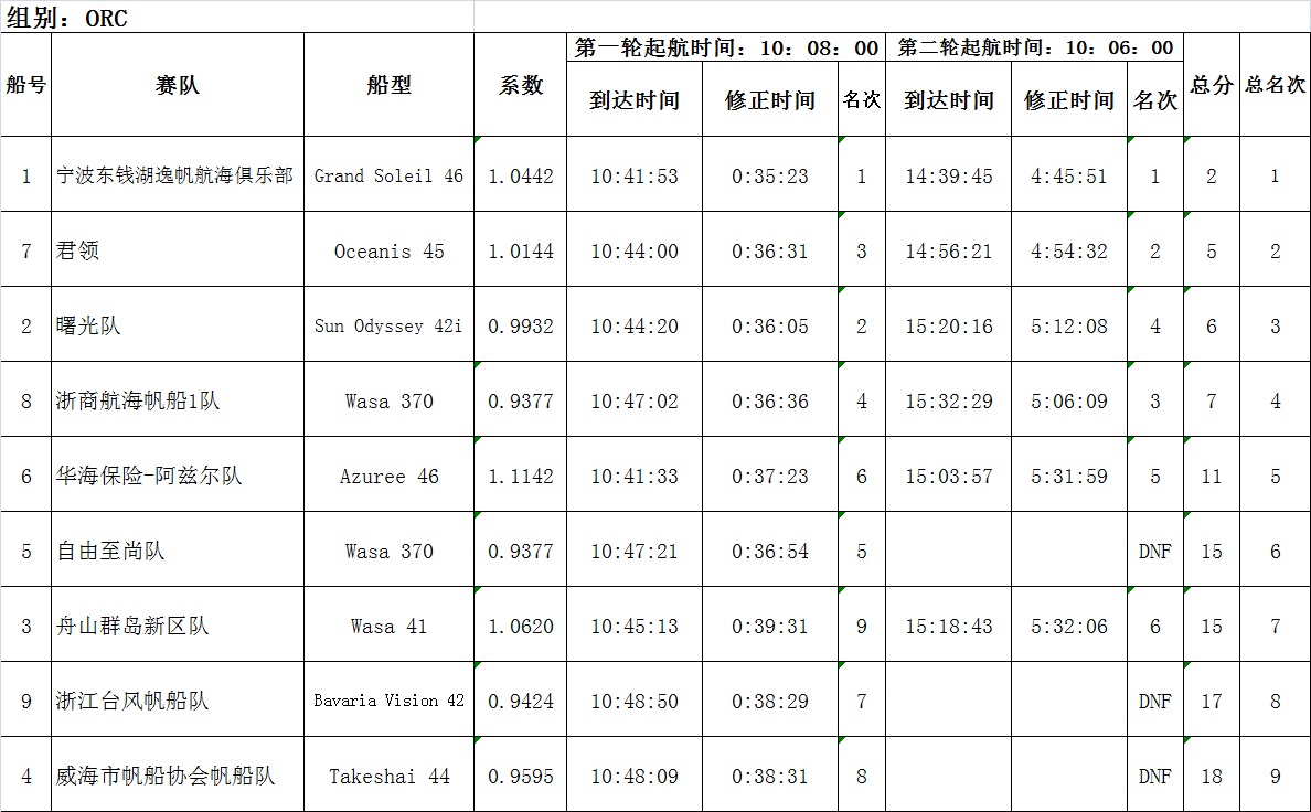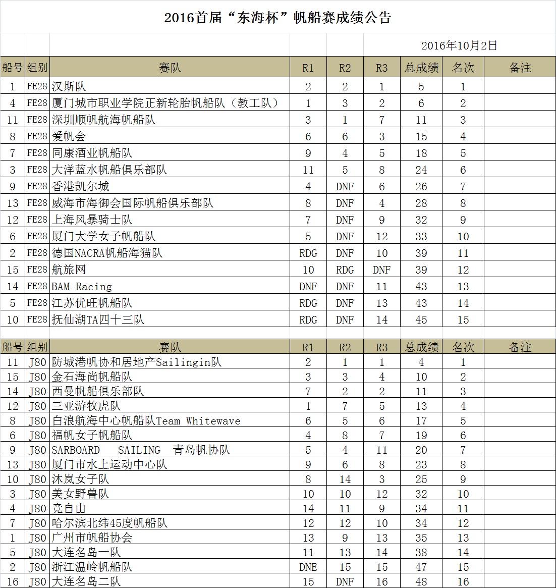 >2016首屆“東海杯”帆船賽成績(jī)公告